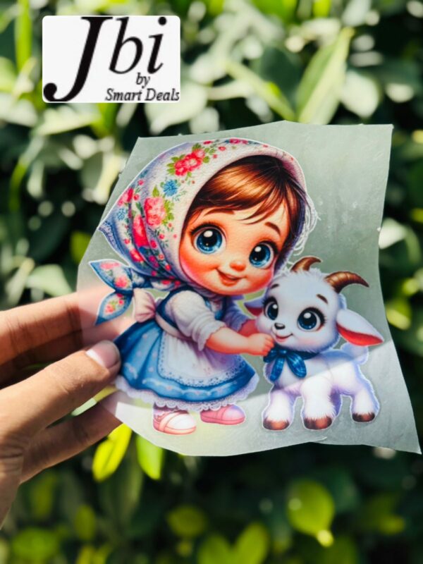 Dtf Cute Baby Girl With Baby Goat Print