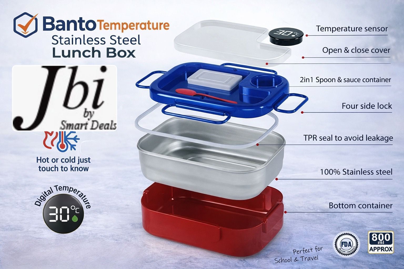 800ml Temperature Sensor Banto Stainless Steel Lunch Box with Box Packing